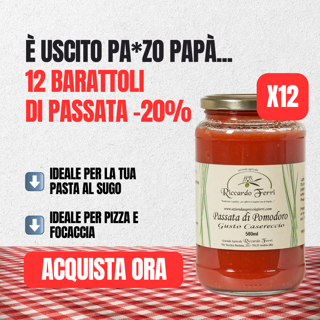 I prodotti dell’Azienda Agricola Ferri nascono dall’amore per la nostra terra e dalla passione e tradizione che da sempre ci lega a questi territori. Pregiato olio extravergine di oliva 100% italiano, vini DOC Castel del Monte, taralli e conserve direttamente a casa tua.