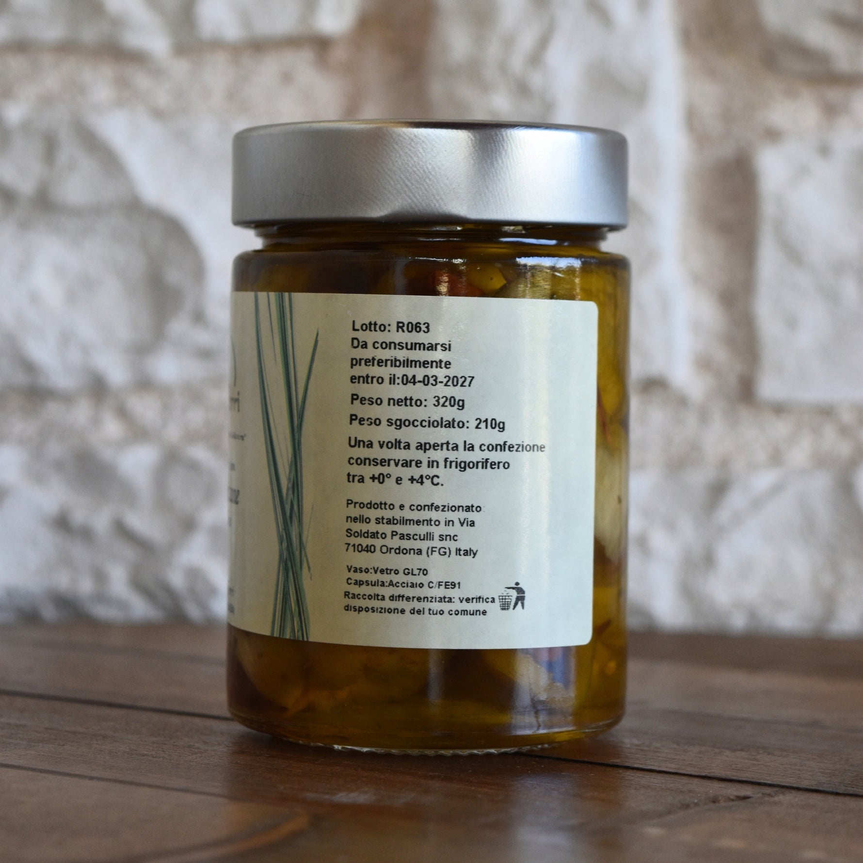 359 gr Involtini di Melanzane sott’olio con olio extra vergine d’oliva. Un viaggio autentico nelle terre di Puglia ad ogni morso. I migliori prodotti delle nostre terre conservati sott’olio in scrigni saporiti. Stupisci gli ospiti con le conserve Ferri e gusta tutto il buono dei prodotti del sud.