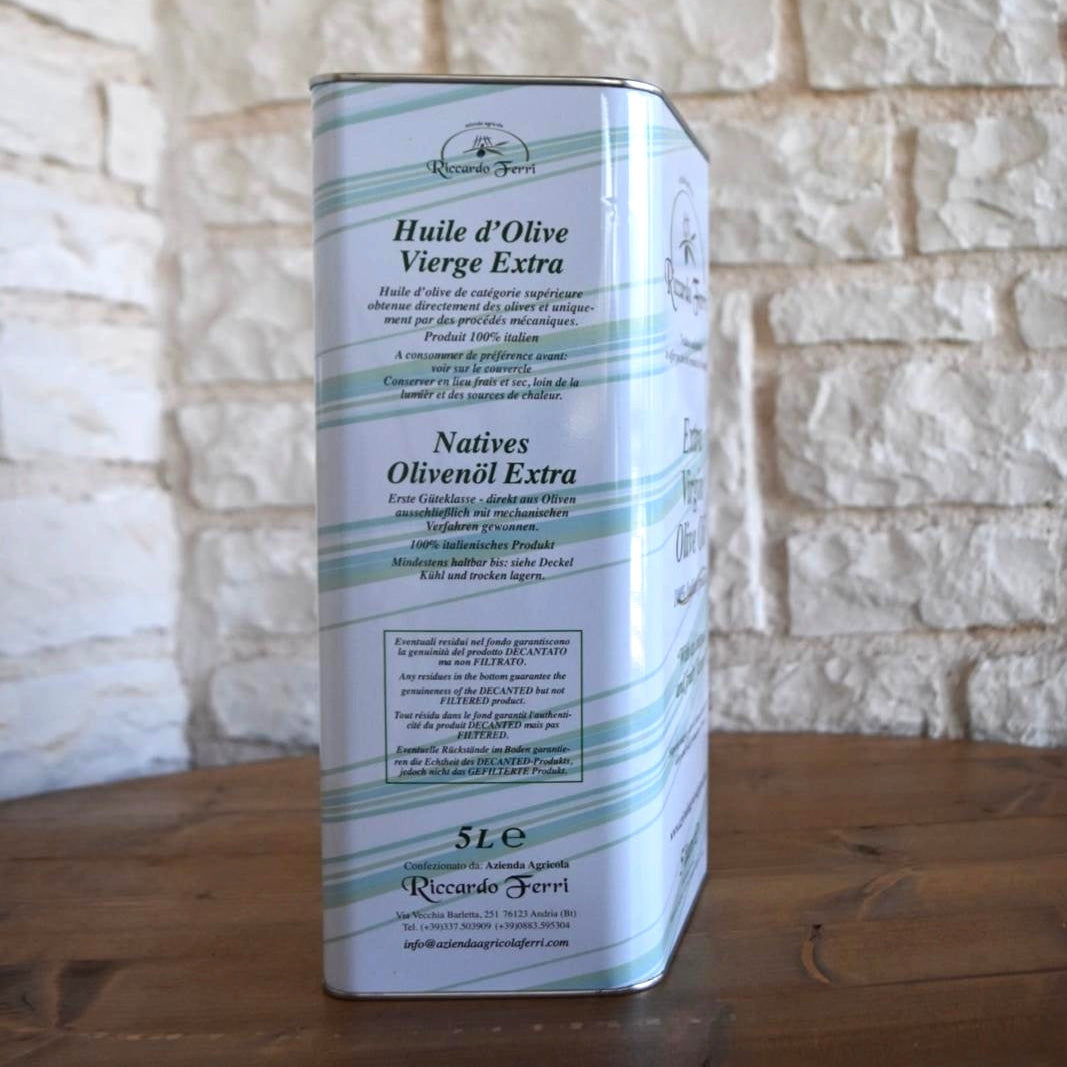 5-Liter-Dose kaltgepresstes natives Olivenöl extra mit intensivem, fruchtigem Geschmack.