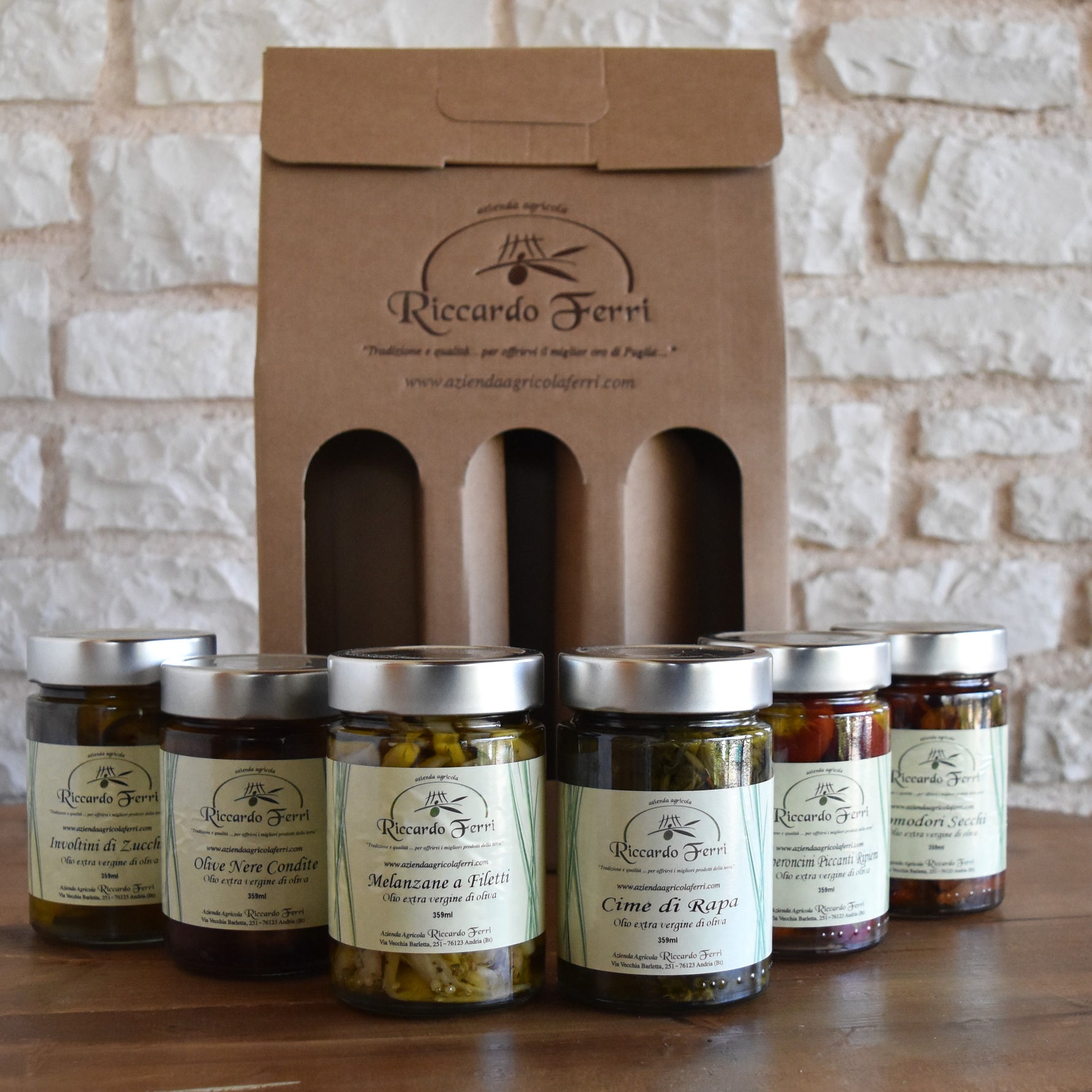 Coffret de six pots de 359 g de légumes mélangés à l'huile d'olive vierge extra